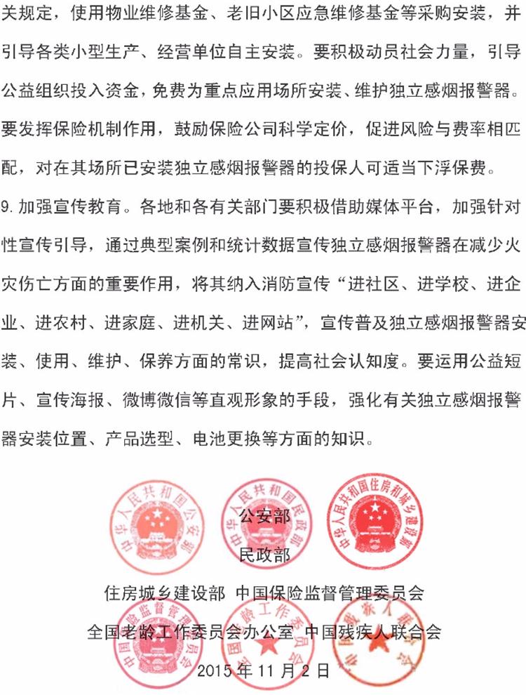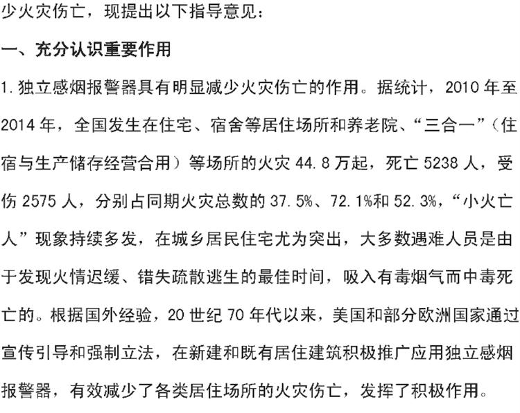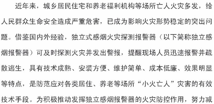 【獨立式煙感】火災(zāi)探測報警器六部委支持文件